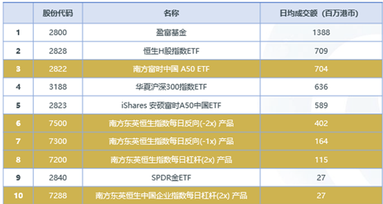 香港前十大最活跃成交的ETF/ETP